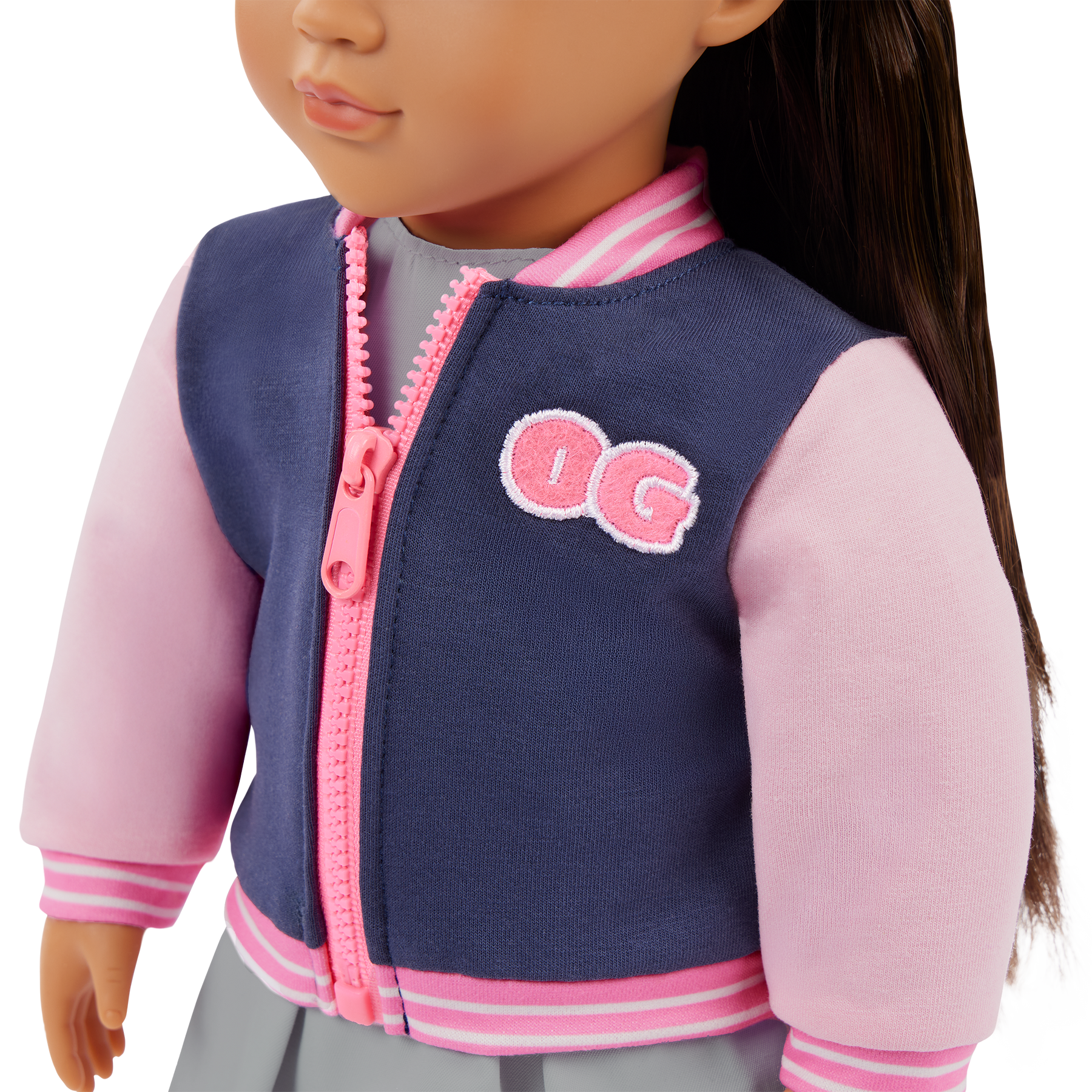 Inspire learning and schooltime fun with Our Generation 46 cm doll Marisol! What will Marisol's school day look like? The adventure is up to you! Role-play as a teacher or student to explore your favourite subjects, have lunch with doll friends, and recreate a range of recess activities. Fashion lovers can get Marisol ready for school on time with her coordinated uniform. She wears a cute dress, sparkly headband, and a varsity jacket with bright pink trim and "OG" lettering. She also has a huggable soft body and lifelike features that will delight doll fans during playtime. Her beautiful brown eyes open and close, and her long, dark-brown hair is fun to style in many ways. Marisol's outfit has easy-open closures to quickly put on and remove, so kids can mix, match, and explore endless self-expression. Our Generation dolls make a great gift for kids ages 3+ (small parts), encouraging them to create their own unique stories.