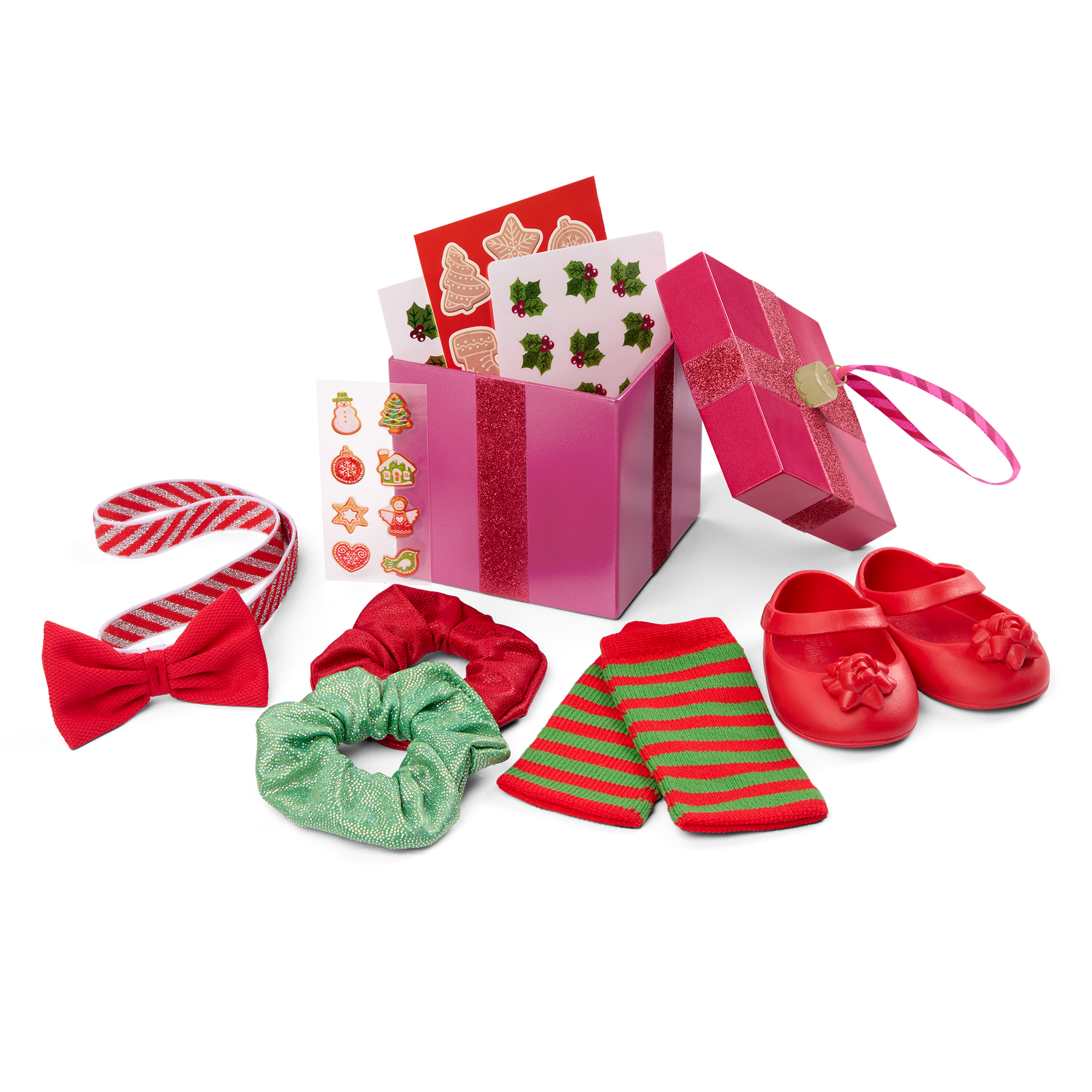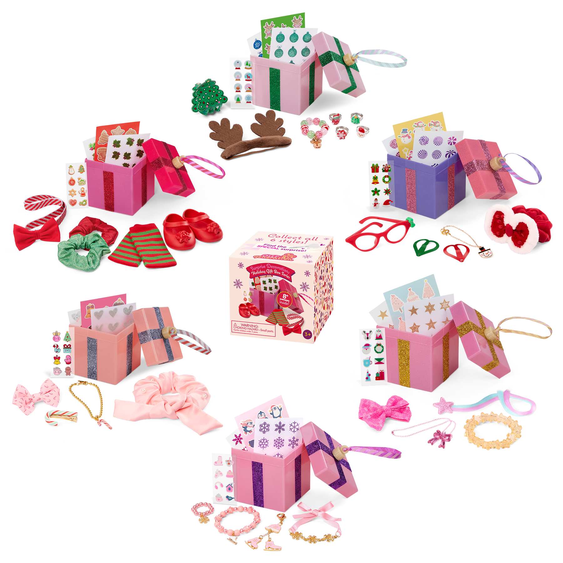 Unwrap and unbox festive surprises with the Our Generation Holiday Gift Box Series! Each limited-edition gift box arrives as a surprise in mystery packaging for an exciting reveal, with an extra 8+ mini surprise toys inside for kids to open! Kids will discover a variety of fashion items and tattoo stickers designed for them, with additional doll-sized items to share in the joy. Once opened, the gift box transforms into a dazzling Christmas tree ornament. Just attach the ornament cap and decorate it with the included sticker sheets before picking out the perfect spot to display! Will you find the stylish hairbrush? It’s hidden in 1 of 6 mystery boxes wrapped in a special "surprise" bag! Collect them all and check off each style in the collector's guide to complete the series. Includes 1 Our Generation Surprise Gift Box with 8+ accessories inside. Holiday Gift Box is shipped at random. Our Generation dolls sold separately.