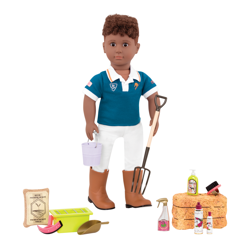 Pamper your ponies with the 12-pc Hay and Neigh Horse Care Accessory Set from Our Generation! This accessory set has everything you need to help your 18" dolls keep their favourite 20" horses happy. Serve up a healthy dinner with the feed bag and scoop, and give them snacks to munch on all day with the hay bale and pitchfork. Help your loyal pals shine with the grooming tools, shampoos, and various equestrian grooming products. For even more ways to gallop into fun, check out the entire Our Generation Equestrian Collection featuring horses, foals, outfits, stable, and more! (Dolls and horses sold separately)