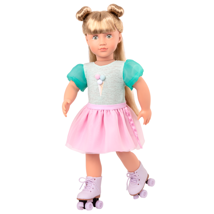 • 4-piece Doll Outfit: Roller skates and ice cream-themed clothes for 18-inch dolls.