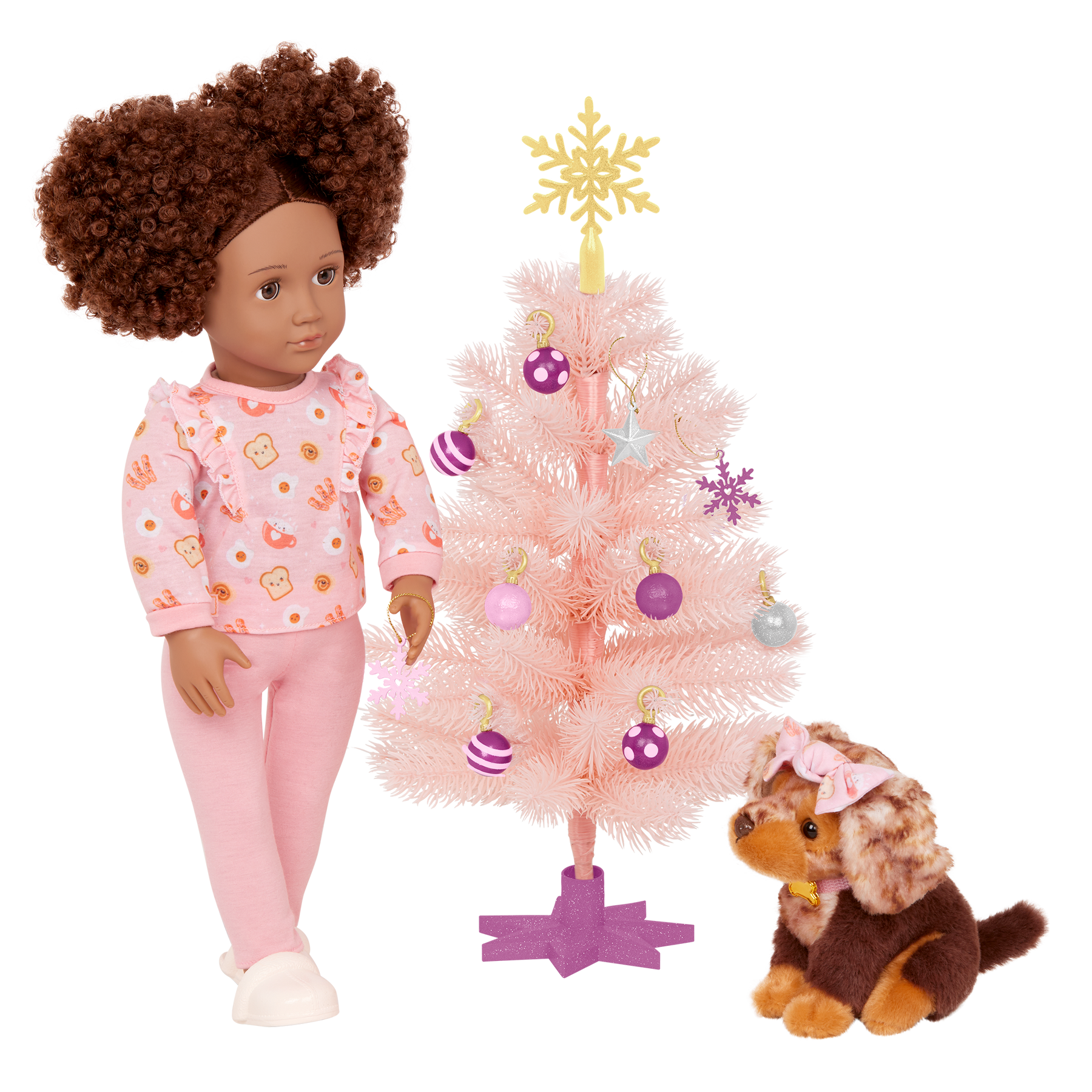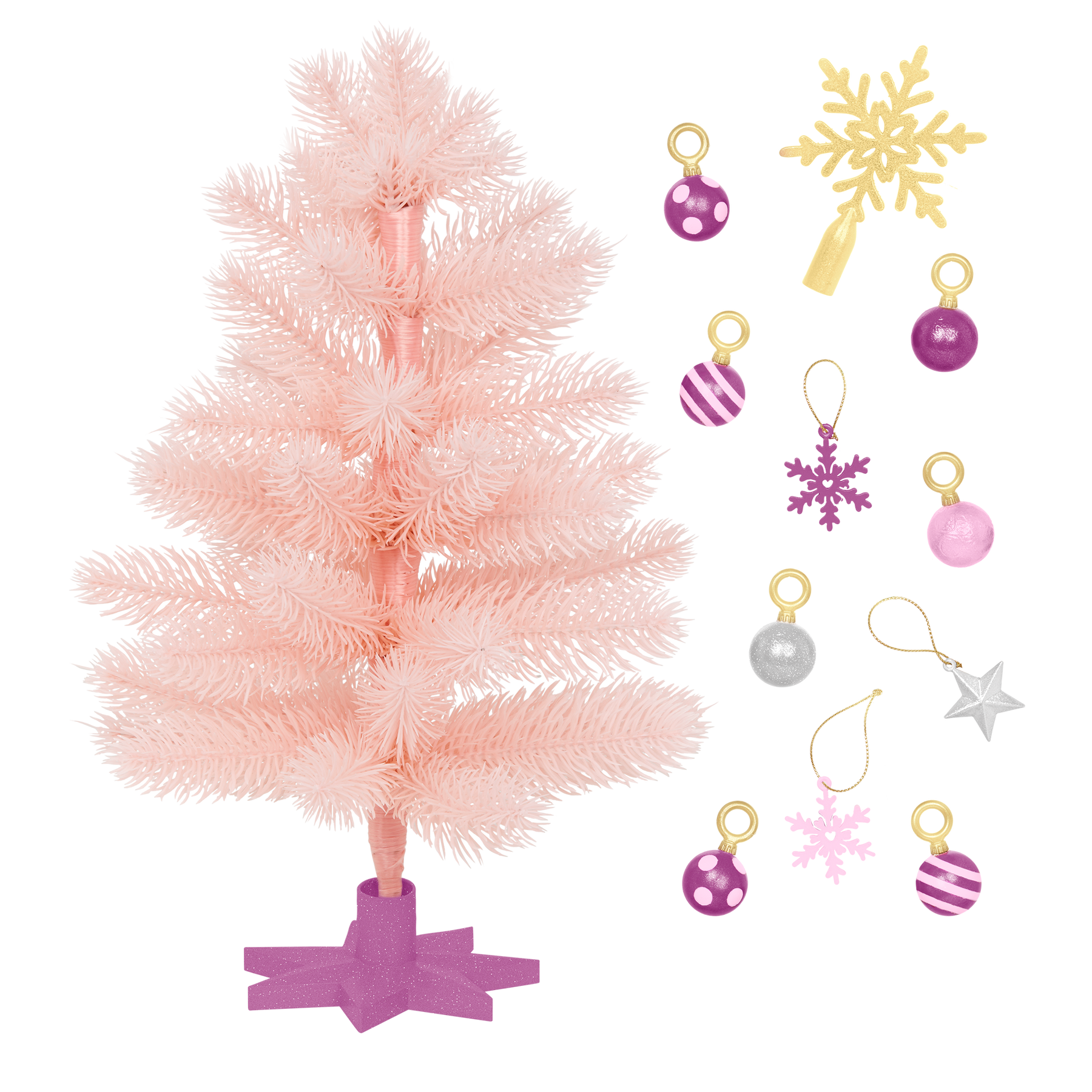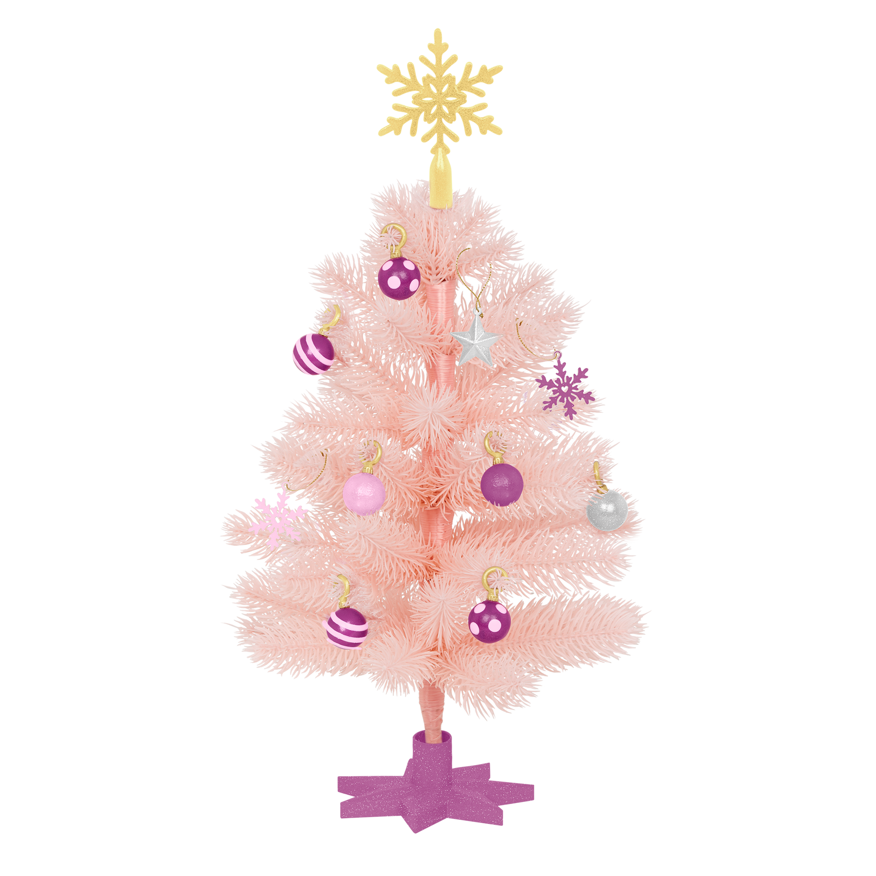 Set the scene for festive fun with the Our Generation Snowflakes & Sparkles Christmas tree! Designed in an eye-catching cherry blossom shade of pink, this Christmas tree comes with 10 ornaments and a golden snowflake tree topper for a full holiday look. Large ornament rings make it easy for kids to decorate from start to finish. Plus, they can display the tree in their favourite play areas with the included tree stand (just in time for the celebration!). Our Generation accessories make a great gift for kids ages 3+ (small parts), encouraging them to create their own unique stories. Compatible with most 46 cm dolls and accessories. Dolls sold separately.